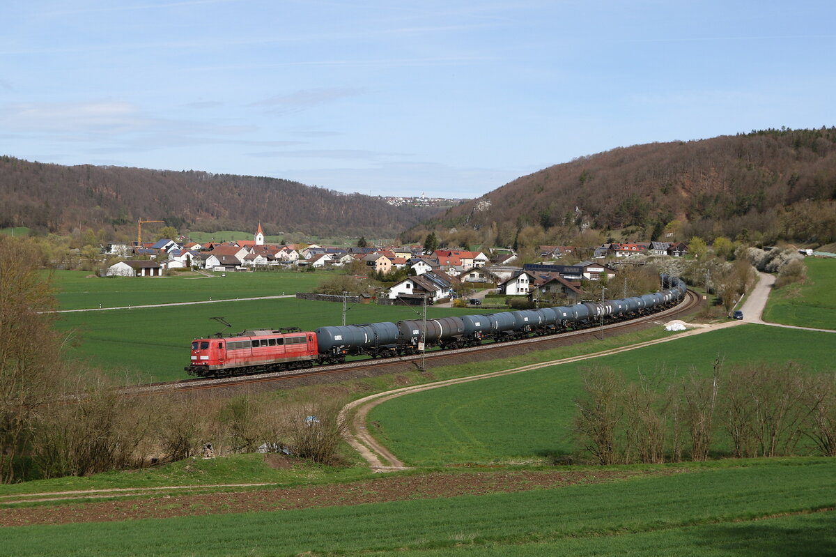 151 018 war mit einem "KLV" am 10. März 2022 bei Grabenstätt im Chiemgau in Richtung Salzburg unterwegs.