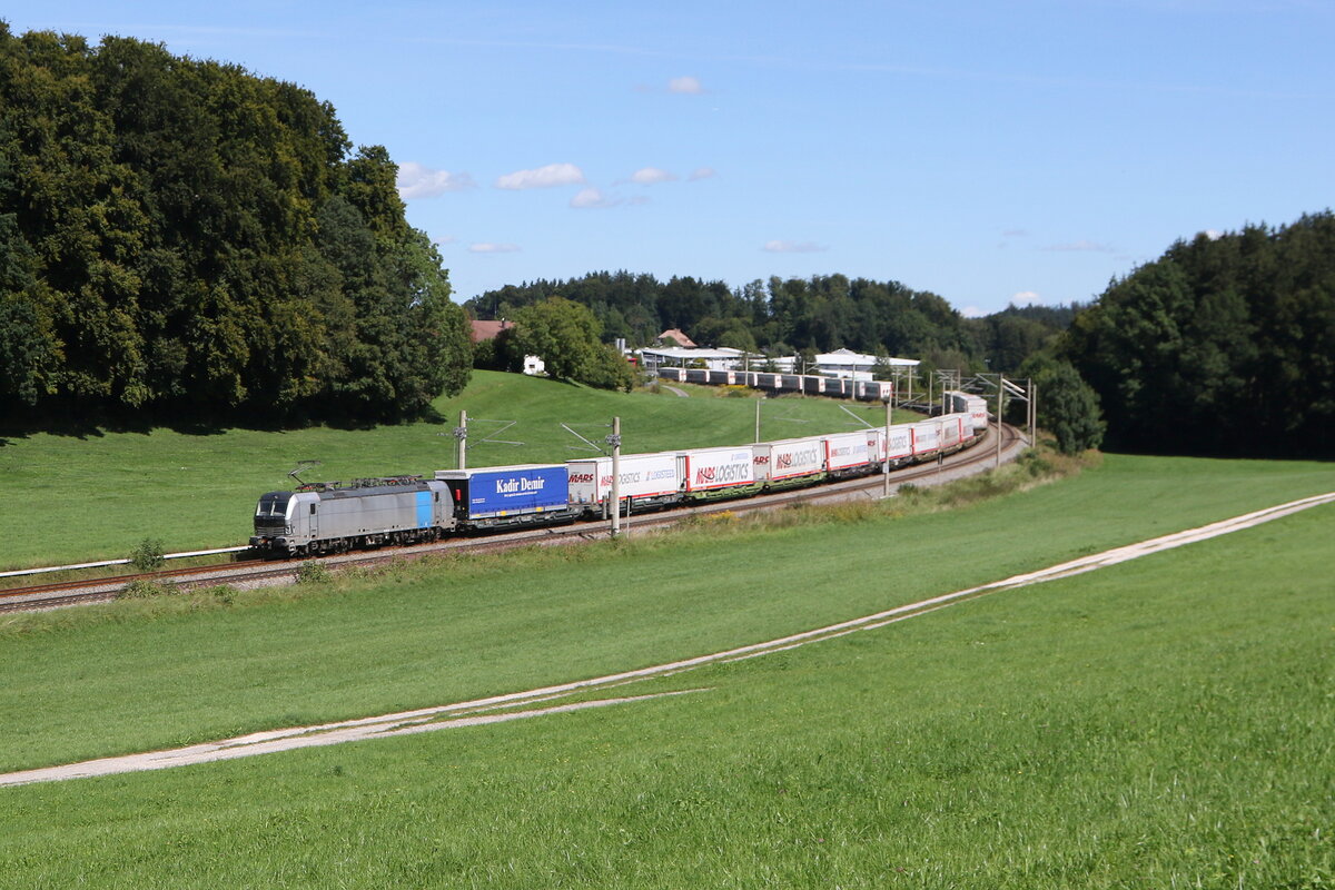 185 407 & 185 684 waren am 5. Februar 2020 bei Übersee am Chiemsee mit dem "Mars-Zug" in Richtung Salzburg unterwegs.