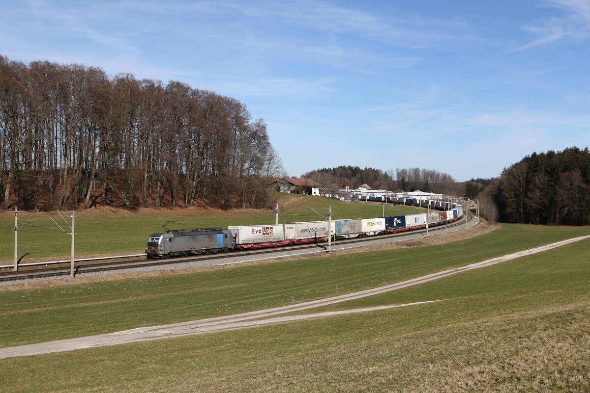 7193 909 von "RAILPOOL" mit einem "KLV" aus Salzburg kommend am 4. März 2026 bei Übersee am Chiemsee.