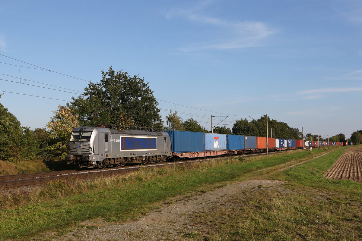 186 247-3 mit einem Containerzug am 2. September 2016 bei Hamburg-Hausbruch.