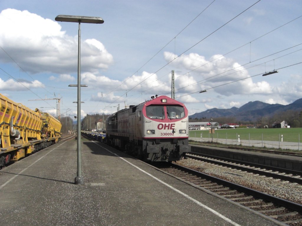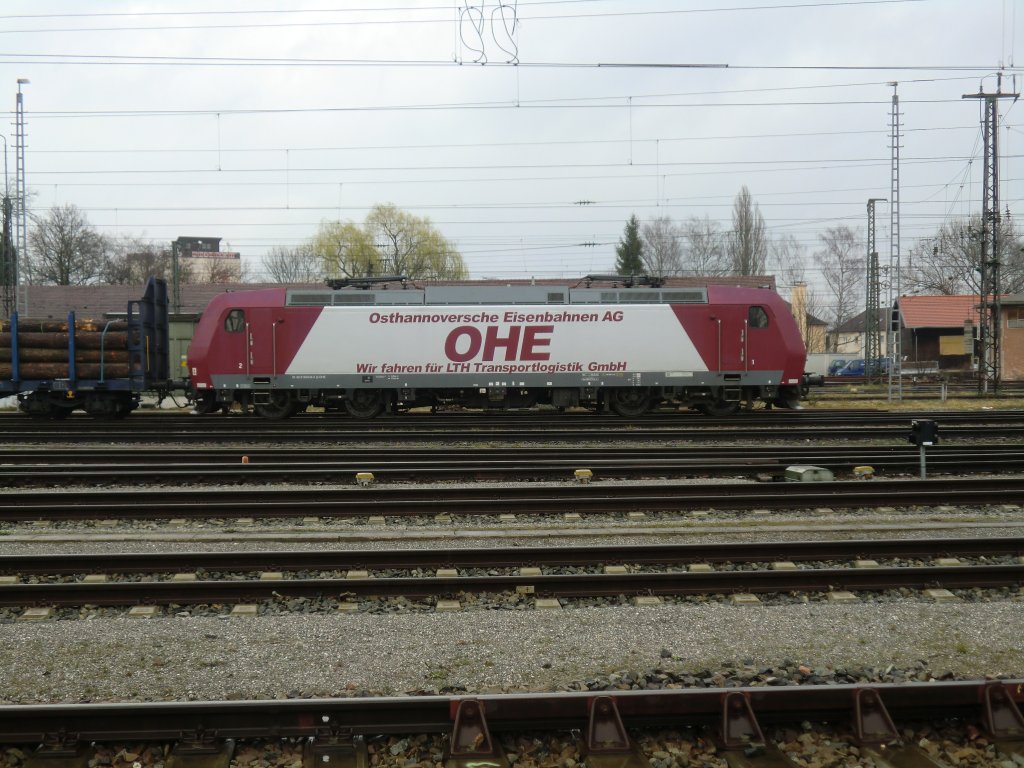 270 080 der "OHE" zieht am 2. September 2016 einen Containerzug bei Hamburg-Moorburg in Richtung Hamburg Hafen.