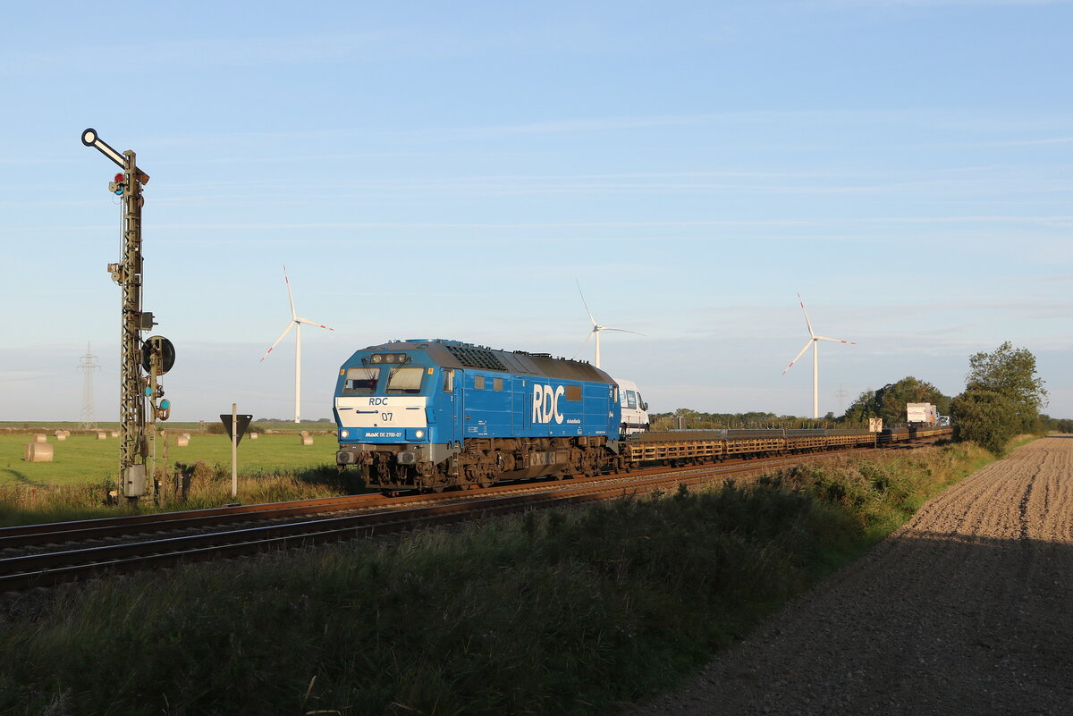 MAK DE 2700-02 mit einem Autozug am 14. August 2017 auf dem Hindenburgdamm.