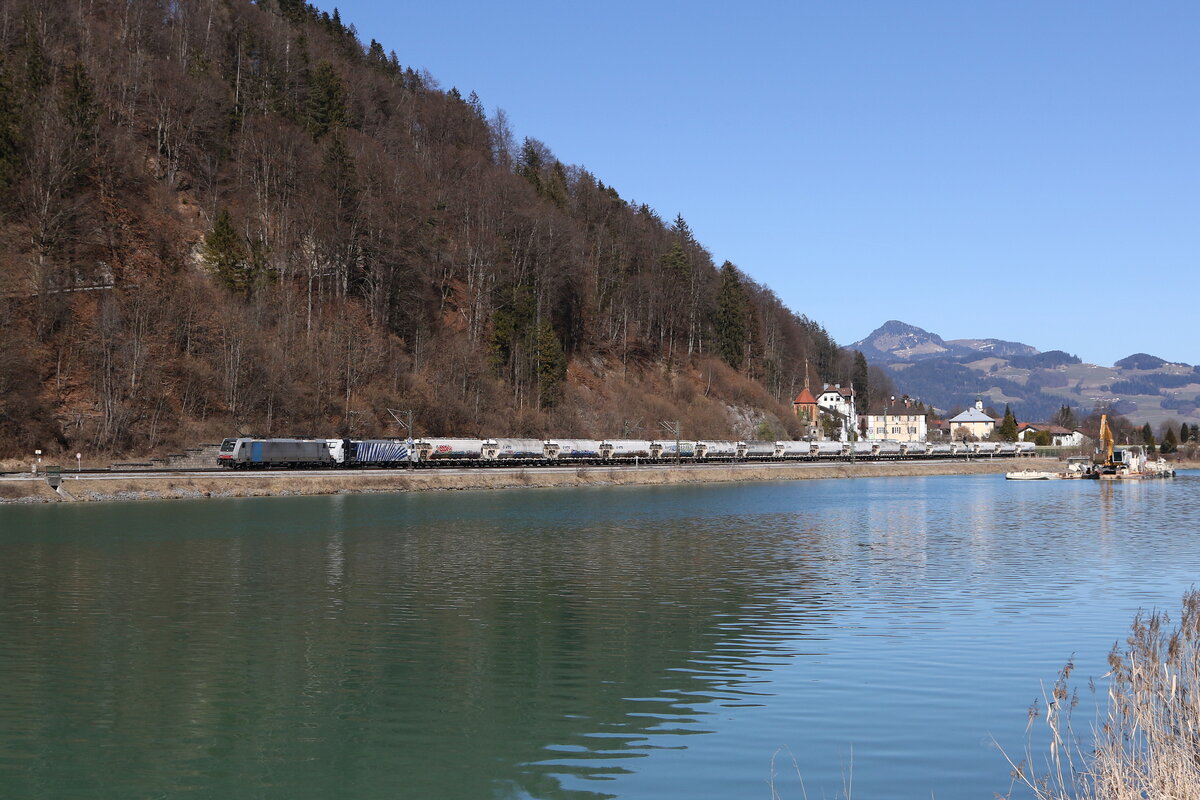 186 264 von "AKIEM" mit einem KLV am 2. Mai 2022 im "Bächergrund" bei Lorch am Rhein.
