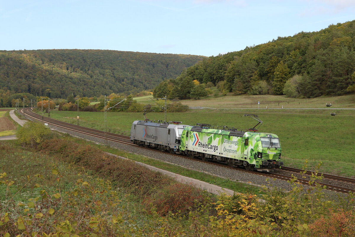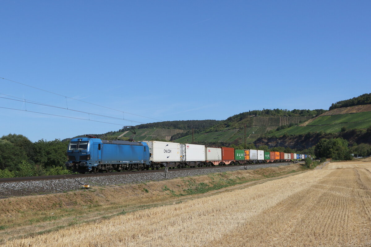 192 014 von "RTB Cargo" mit einem Autozug aus Gemünden kommend am 11. August 2022 bei Harrbach am Main.