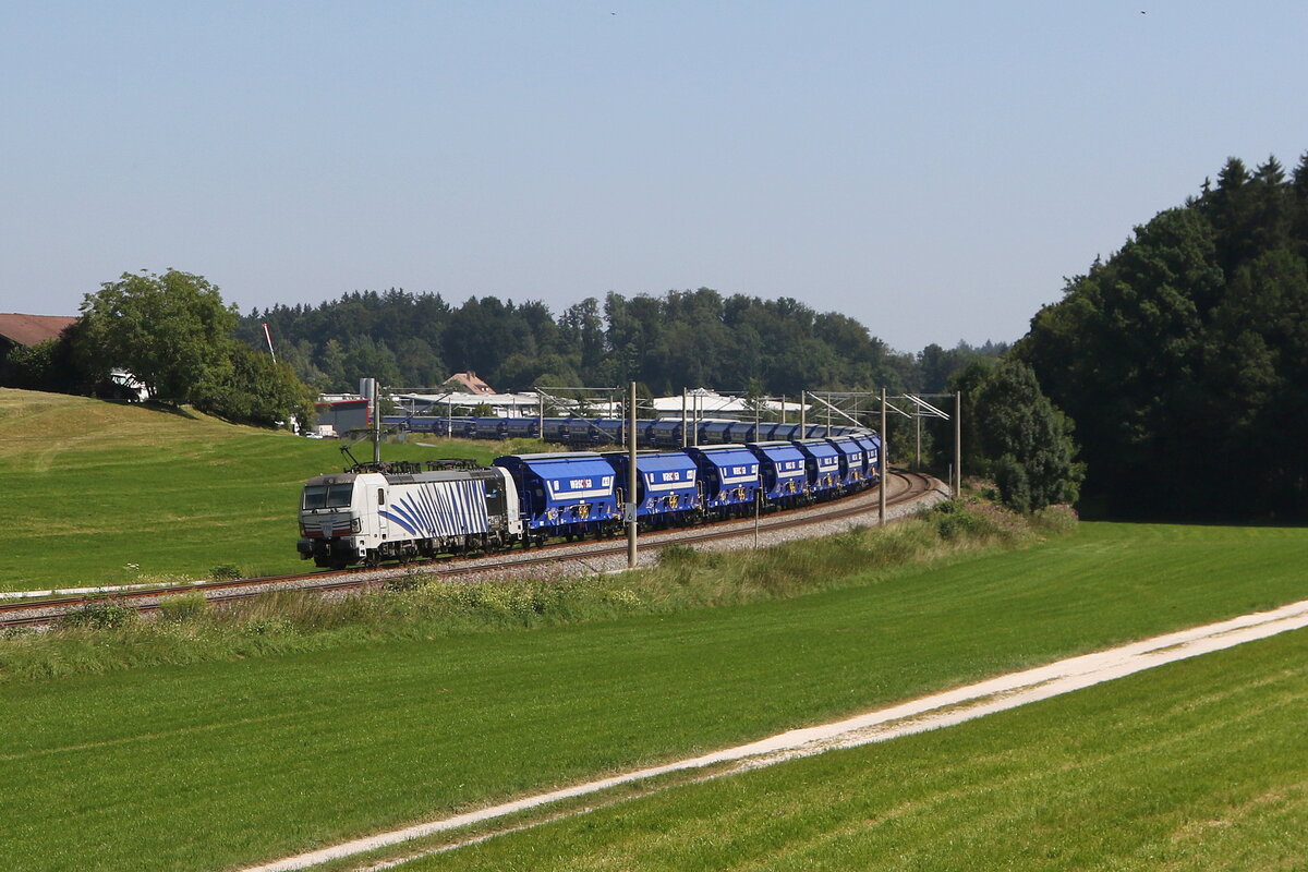 189 905 war am 7. März 2021 mit einem "KLV" am 7. März 2021 bei Grabenstätt im Chiemgau in Richtung Salzburg unterwegs.