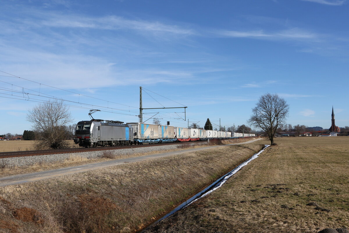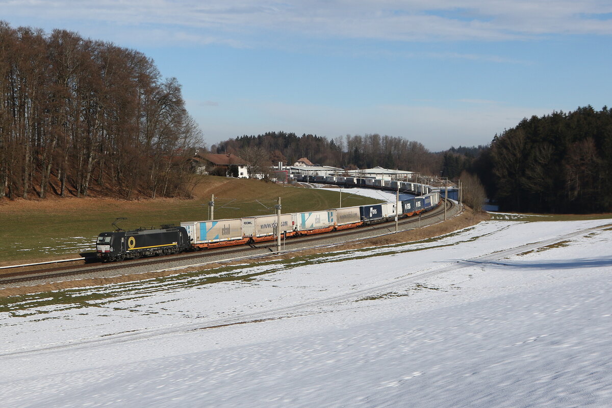 1293 021 mit einem "EKOL-KLV" aus Ingolstadt kommend am 6. April 2024 bei Fahlenbach.
