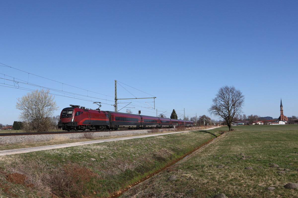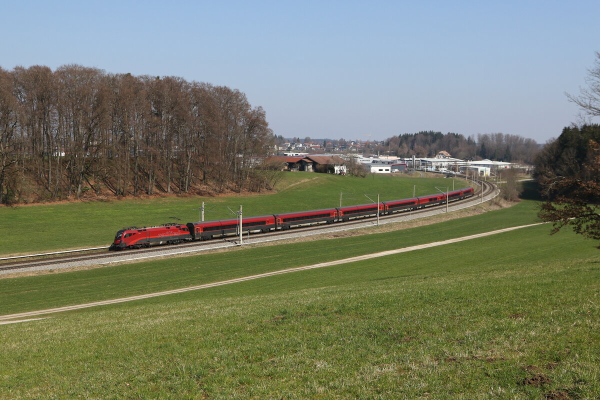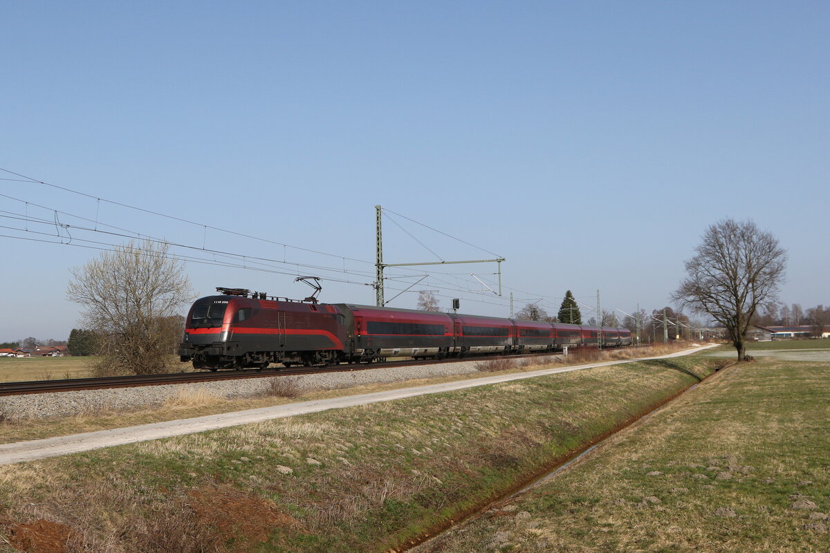 1116 269 kam kurz darauf mit einem gemischten Güterzug ebenfalls aus Salzburg. Aufgenommen am 6. Januar 2016 bei Übersee am Chiemsee.