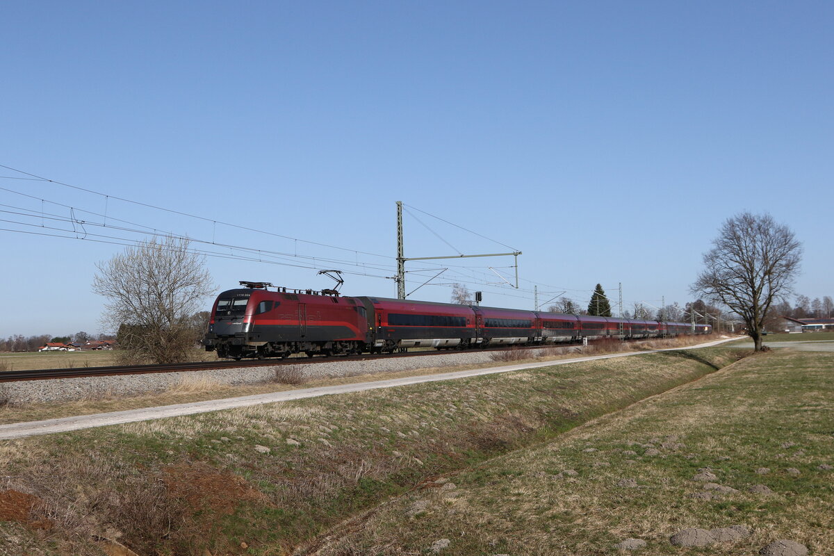1116 104 mit einem "EC" auf dem Weg nach München. Aufgenommen am 19. August 2025 bei Vachendorf im Chiemgau.
