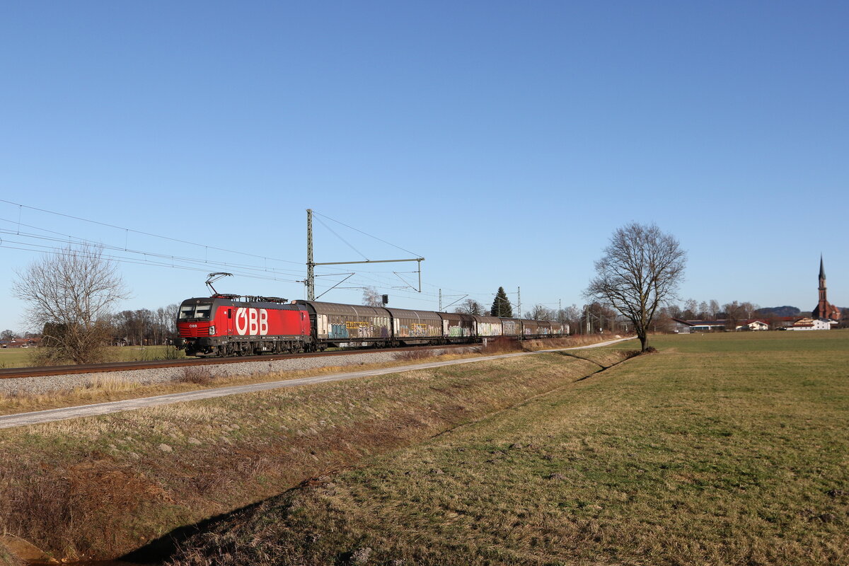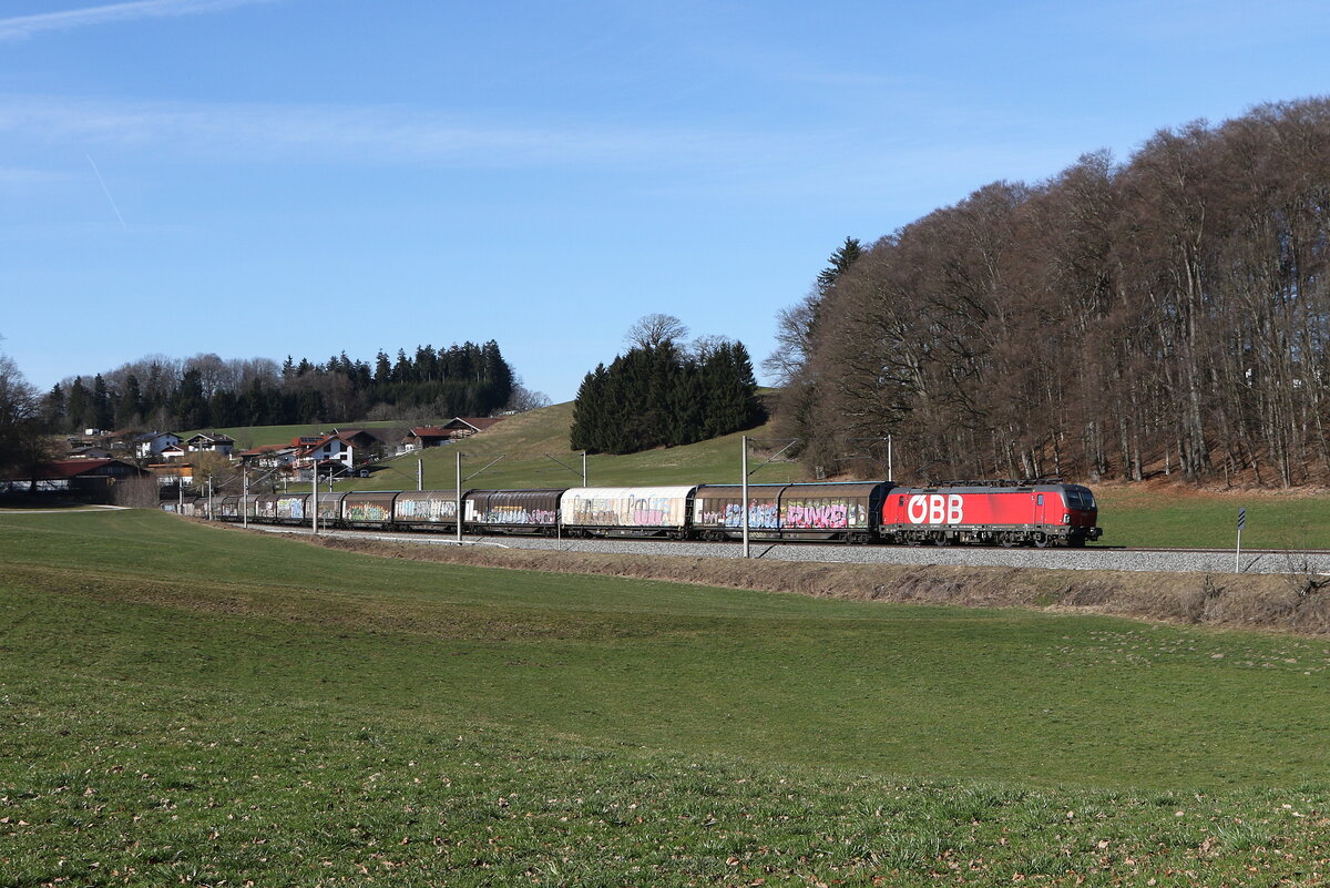 1293 150 mit einem gemischten Güterzug aus Salzburg kommend am 6. September 2023 bei Axdorf.