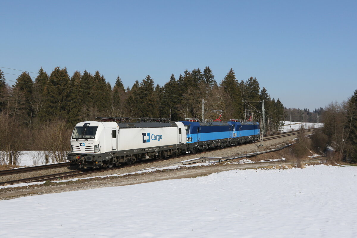 383 010 mit einem Getreidezug am 1. Juli 2020 bei Grabenstätt.